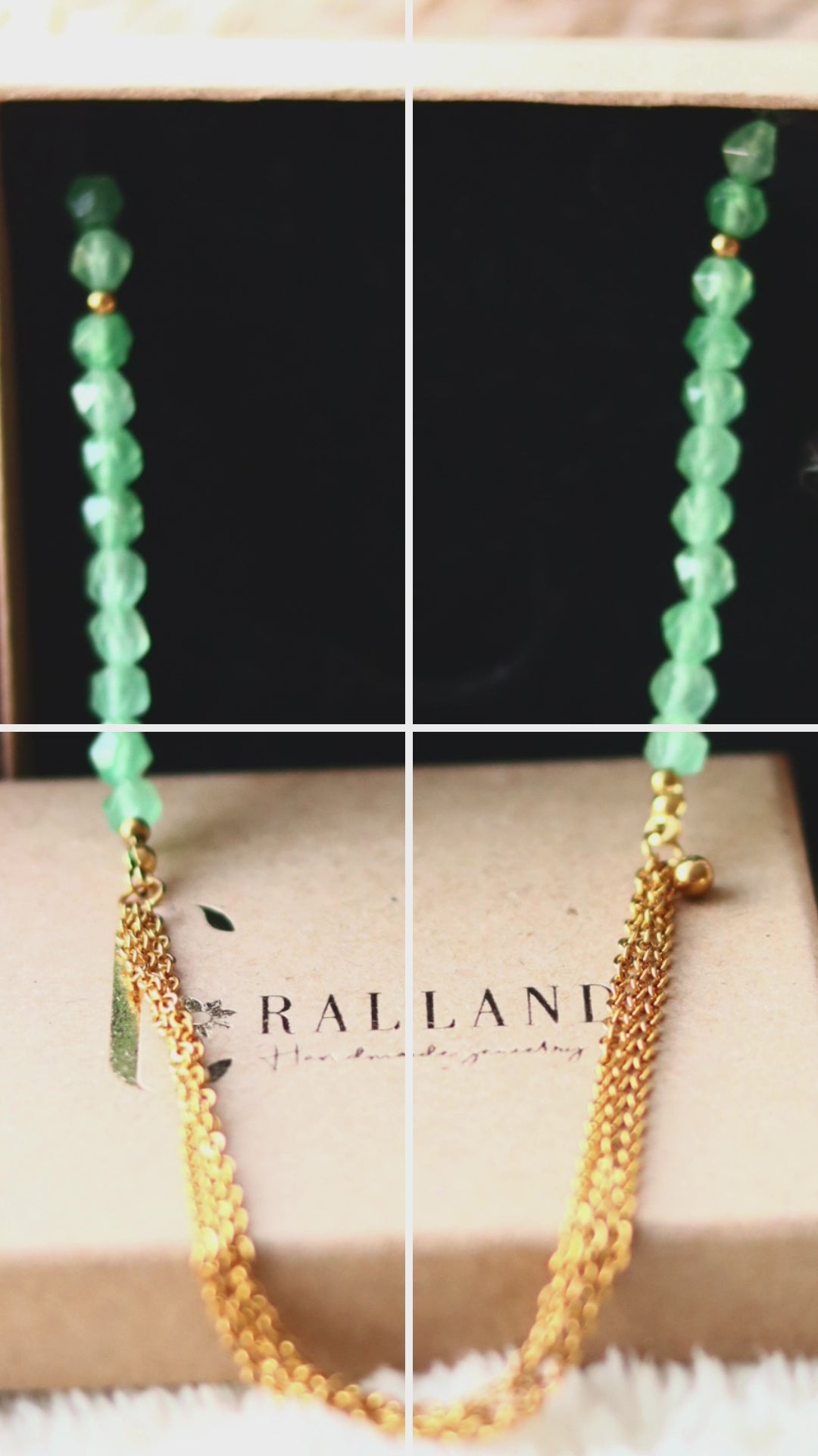 Made of 3mm Green onyx stones with addition of gold stainless steel beads, complemented by 3 layers gold stainless steel chain